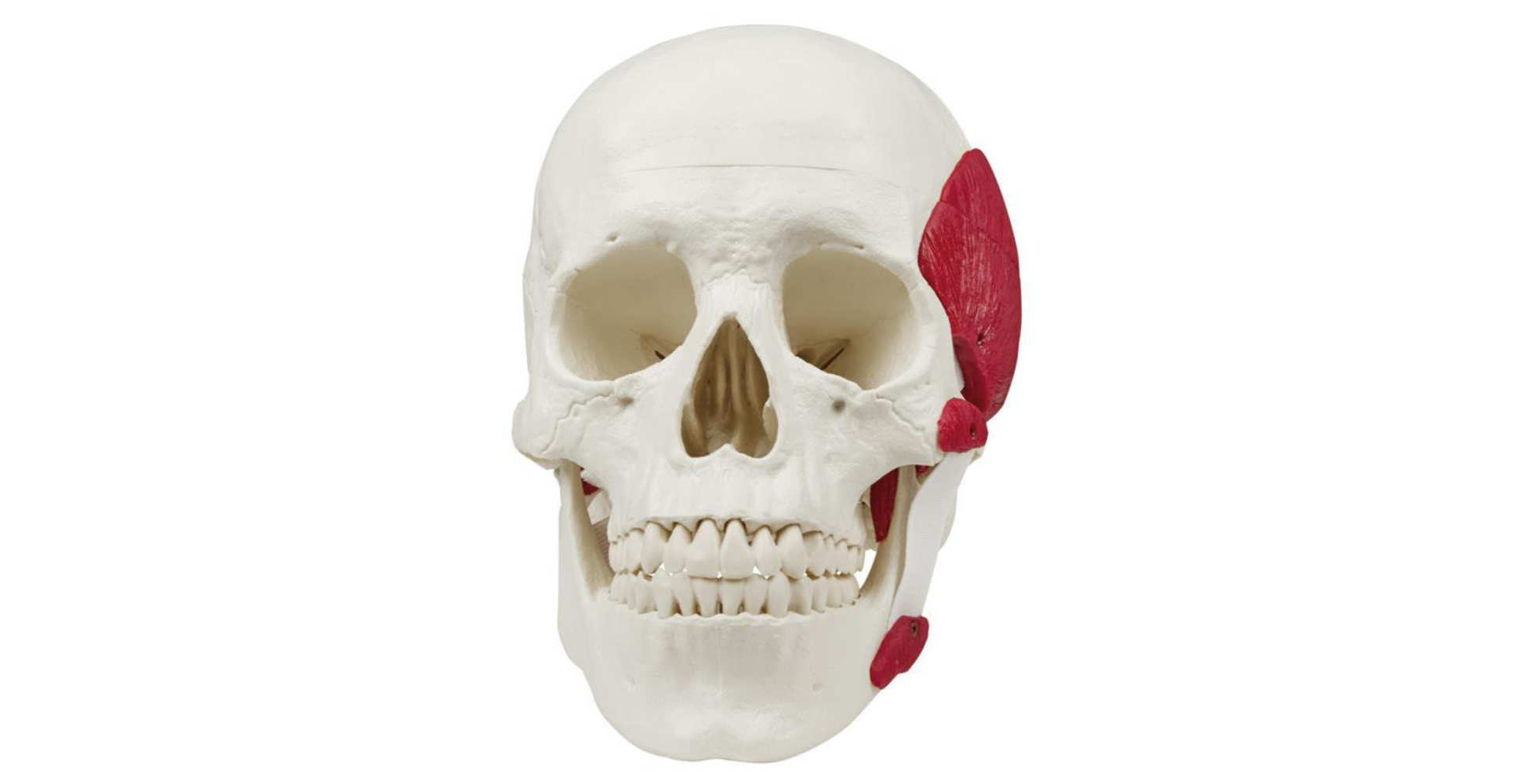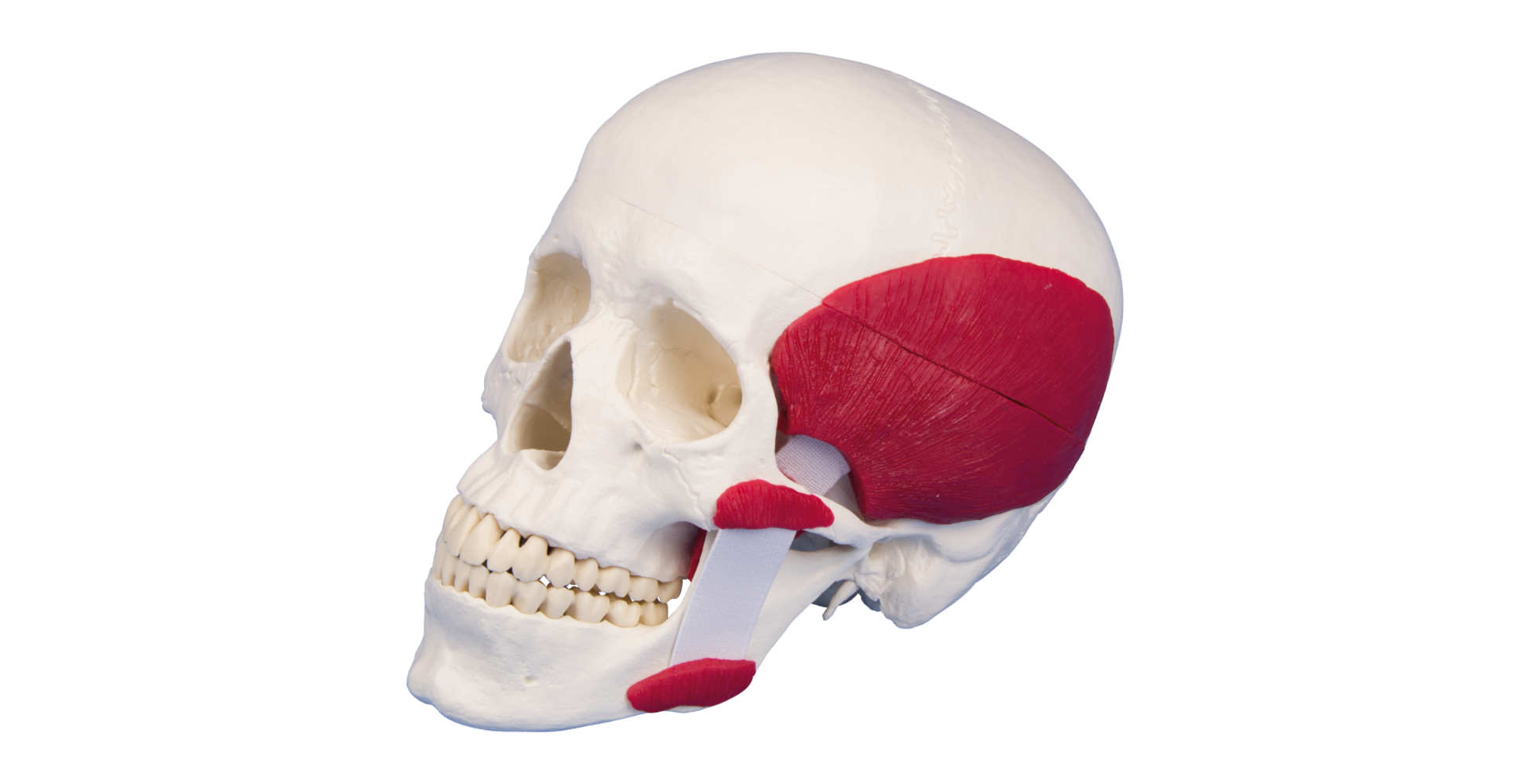 El modelo incluye los principales músculos implicados en la masticación: