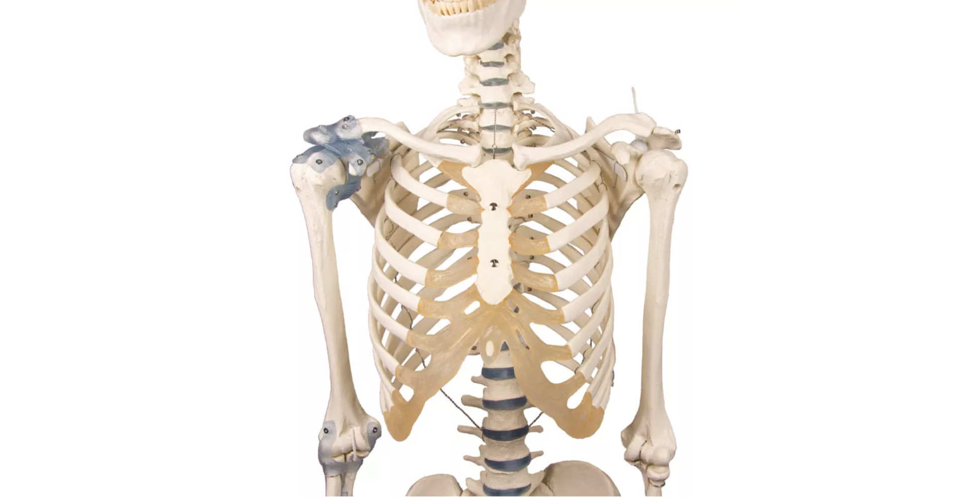 El esqueleto cuenta con articulaciones deslizantes en hombros, caderas y tobillos, lo que permite simular movimientos reales del cuerpo humano. Esta característica es clave para comprender la biomecánica y la función de los ligamentos en la estabilidad articular.