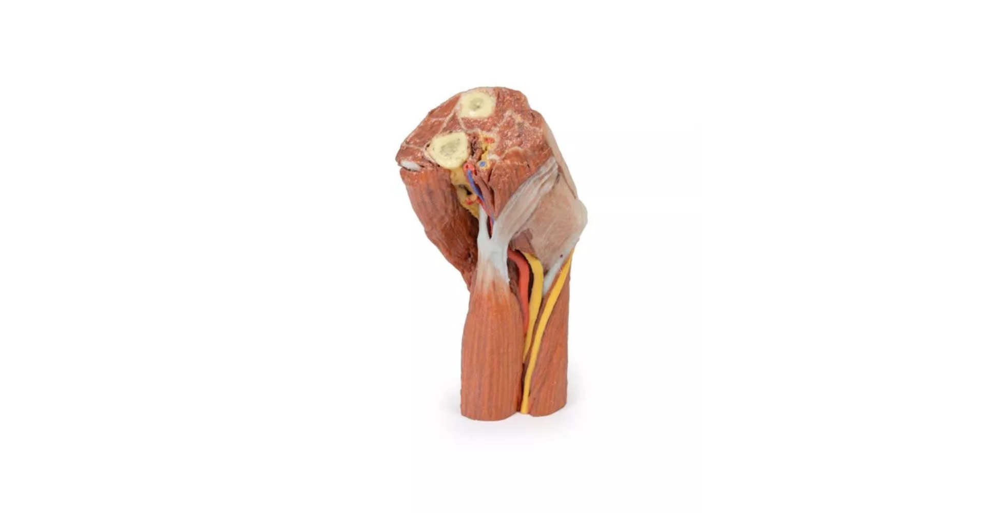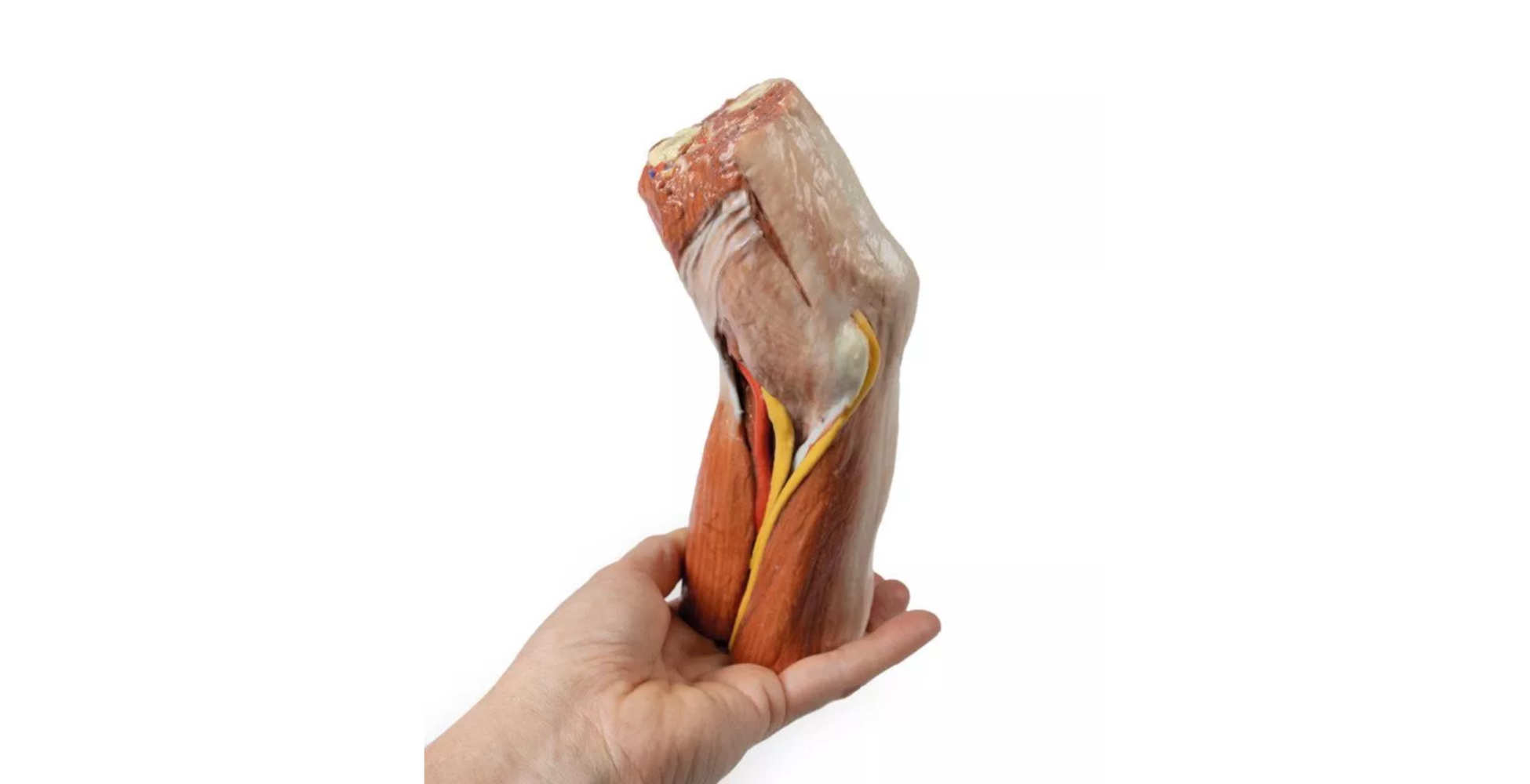 El modelo anatómico Fosa Cubital: músculos, nervios grandes y arteria braquial, impreso en tecnología 3D de alta precisión, ofrece una representación clara y realista del brazo distal, el codo parcialmente flexionado y el antebrazo proximal. Está diseñado para facilitar el estudio detallado de las estructuras musculares, nerviosas y vasculares profundas de la región cubital, una zona anatómica clave para la práctica clínica y la enseñanza médica.