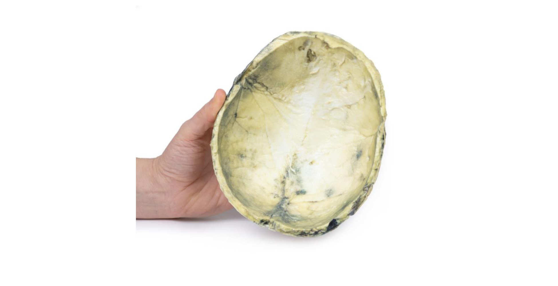 Este modelo muestra un cráneo humano con múltiples lesiones necróticas en la superficie externa, características de la sífilis terciaria. Las lesiones alcanzan un tamaño aproximado de 3 a 4 cm y producen erosión de la tabla externa del cráneo, evidenciando el daño progresivo causado por la infección.