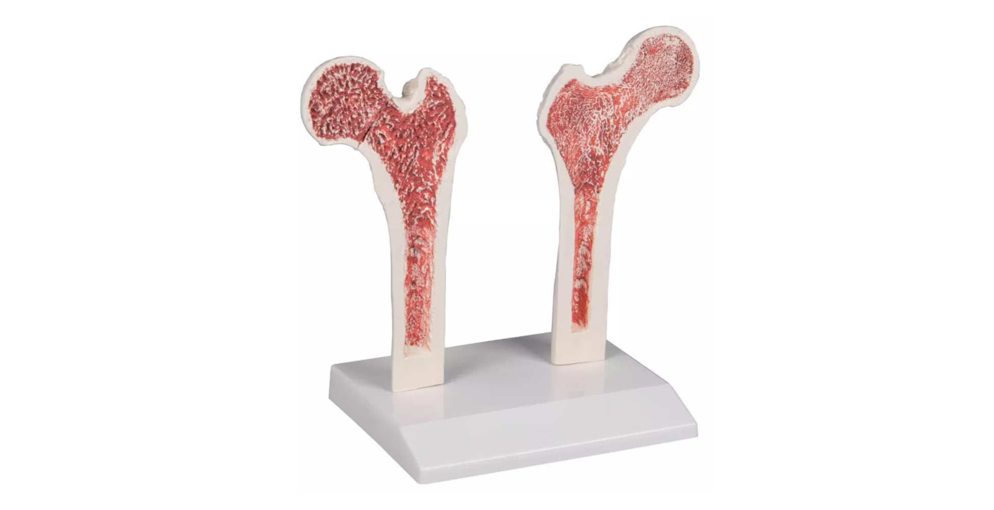 Además, el modelo osteoporótico incluye una fractura ósea visible, lo que permite demostrar de forma impactante las consecuencias de esta enfermedad y la vulnerabilidad del hueso ante esfuerzos mínimos o caídas.