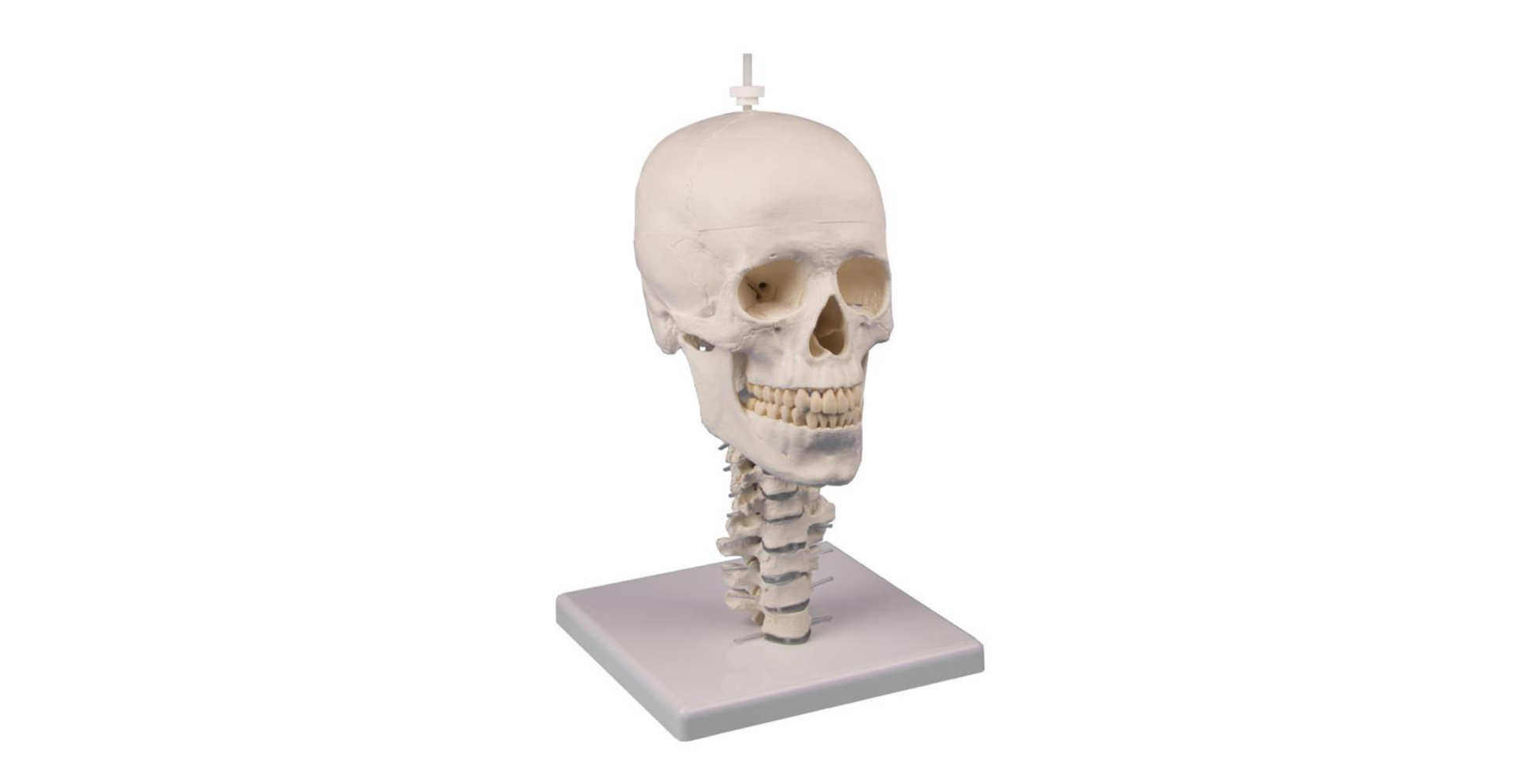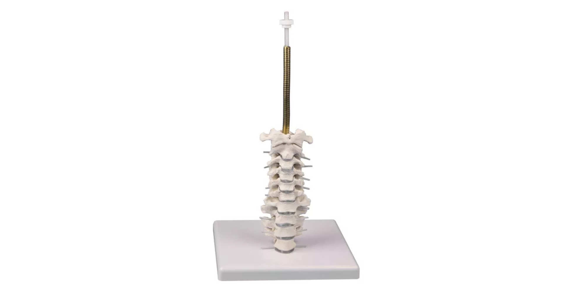Una de las principales ventajas de este modelo es la inclusión de un soporte con columna cervical, lo que permite visualizar la conexión entre el cráneo y las primeras vértebras. Esta característica es clave para comprender la biomecánica cervical y la relación entre cabeza y cuello.