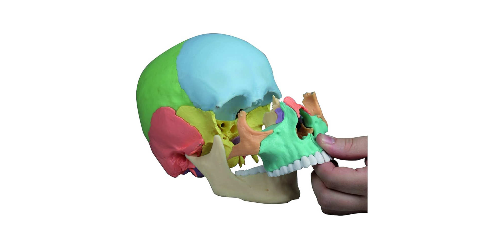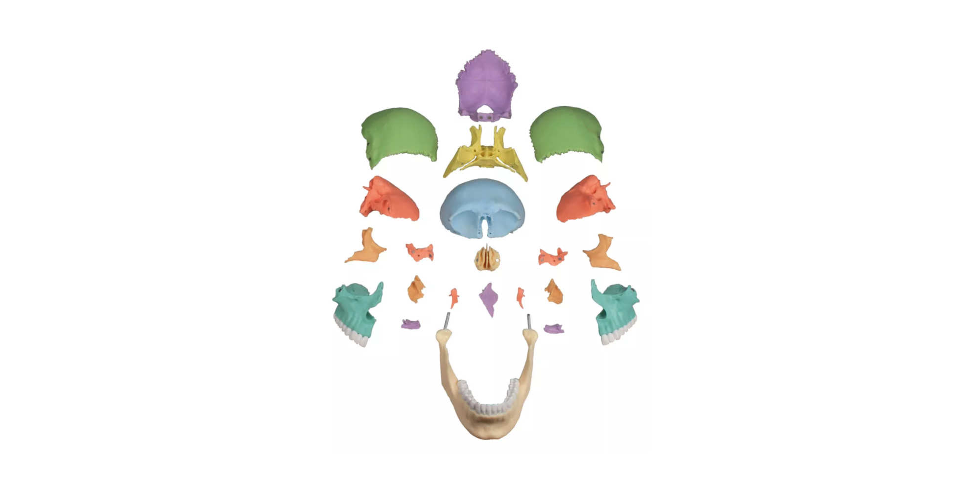El modelo permite separar el cráneo en 22 piezas independientes, representando con gran detalle los principales huesos del cráneo humano, incluyendo: