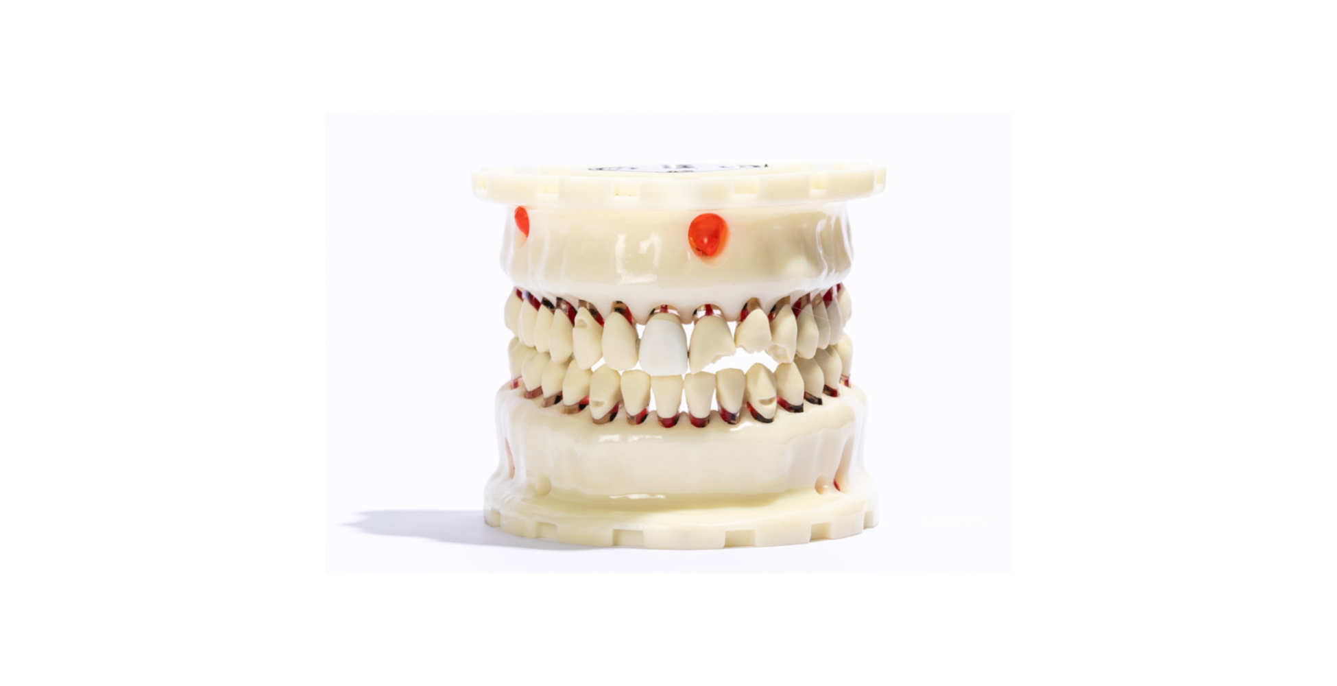 Los dientes son intercambiables y cuentan con cámara pulpar y conducto radicular, permitiendo prácticas de apertura cameral, instrumentación, irrigación, obturación y toma de radiografías. Además, la fijación de los dientes y su integración en la base ósea están diseñadas para ofrecer resistencia realista durante la extracción dental, simulando el uso de elevadores y fórceps.